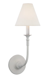 WHITE PLASTER SINGLE ARM SCONCE WITH LINEN SHADE