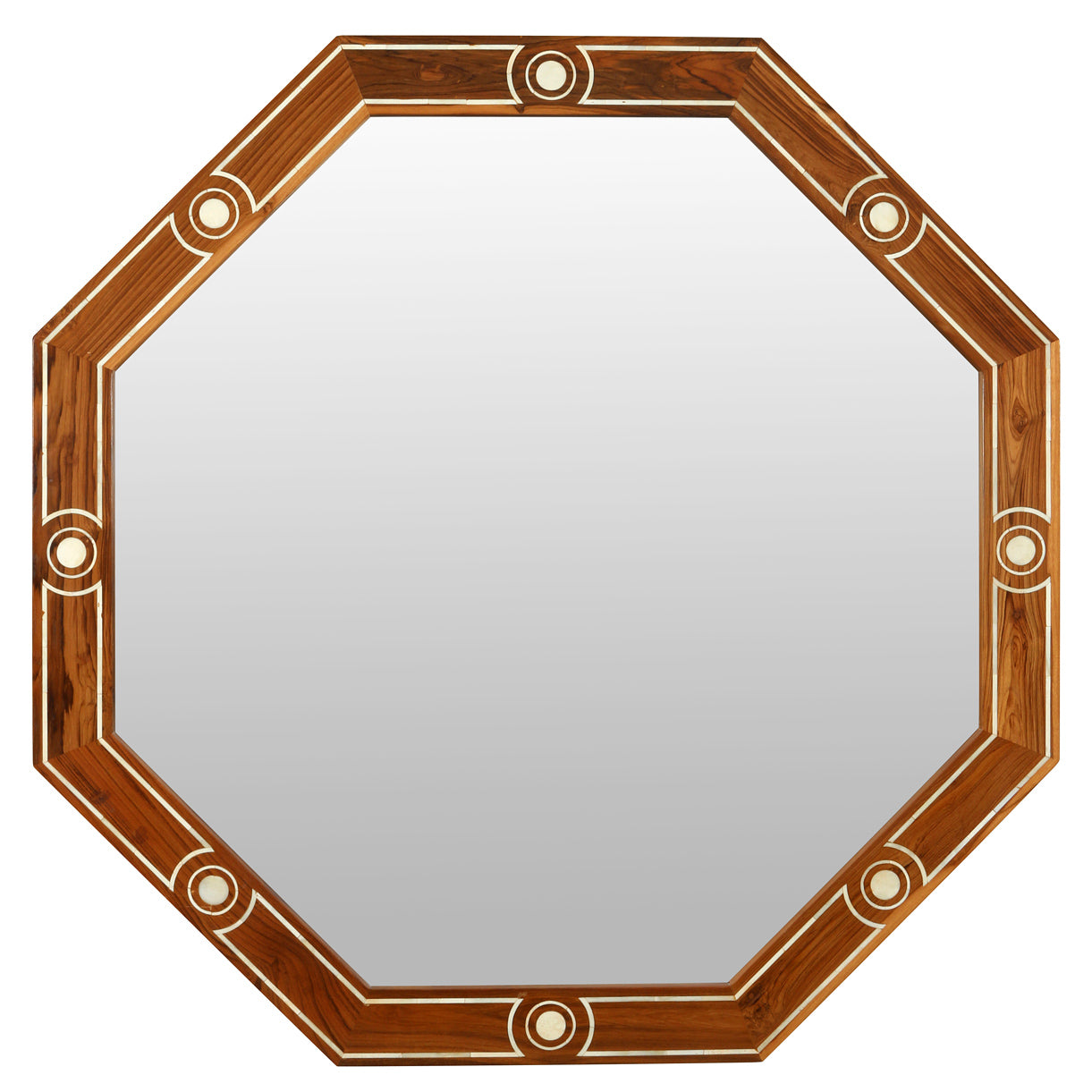 WOOD AND BONE INLAY LARGE OCTAGONAL MIRROR
